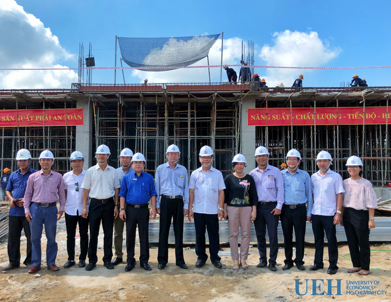 Lãnh đạo UEH thăm quan công trình đang thi công tại Lễ Đổ sàn Tầng 1 Cơ sở Nam Thành phố tháng 06/2018