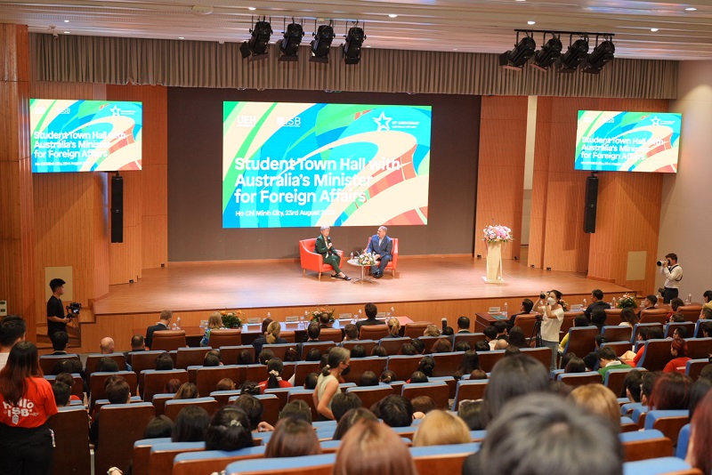 “Student Town Hall with Australia's Minister of Foreign Affairs” diễn ra tại UEH vào chiều ngày 23/8 là một sự kiện tương tác trực tiếp giữa sinh viên và Bộ trưởng Bộ Ngoại giao Úc. Có thể nói, sự kiện này không chỉ là một dấu mốc quan trọng trong việc thúc đẩy tình hữu nghị giữa hai quốc gia mà còn là cơ hội quý giá để thế hệ trẻ Việt Nam và Úc cùng nhau chia sẻ quan điểm và góc nhìn về các vấn đề mang tầm quốc tế như phát triển bền vững, biến đổi khí hậu toàn cầu, chuyển đổi năng lượng,...
