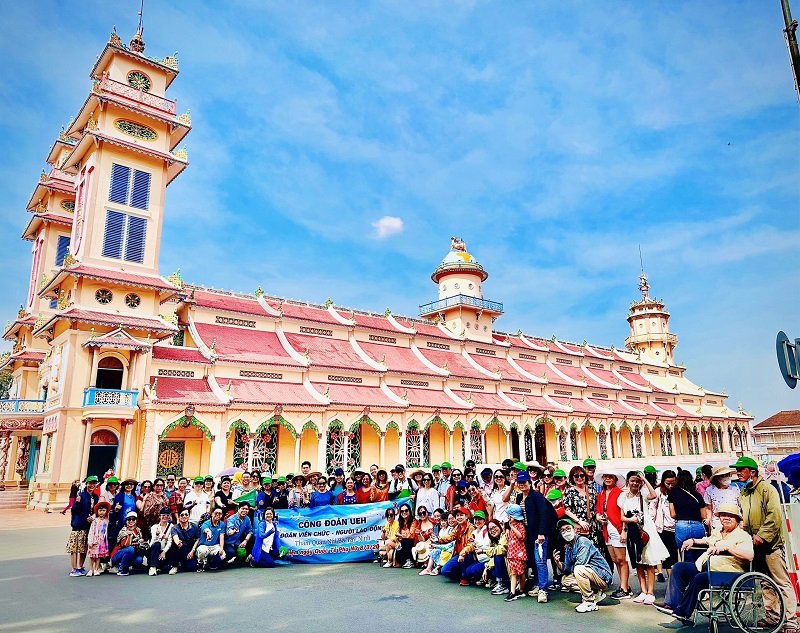 Sau khi thưởng thức bữa ăn trưa, đoàn ghé tham quan Toà Thánh Tây Ninh, một quần thể kiến trúc độc đáo với sự kết hợp hài hoà giữa mỹ thuật Á Đông, phong cách phương Tây.