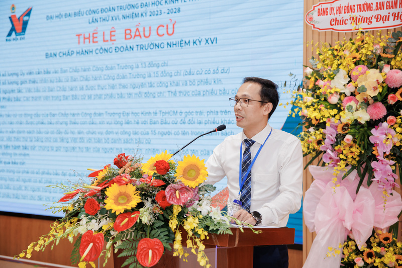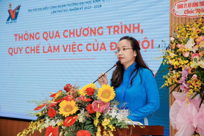 Đại hội tập trung thảo luận, cùng nhìn lại những kết quả đã đạt được và những hạn chế còn tồn tại trong nhiệm kỳ vừa qua; đồng thời đóng góp ý kiến xây dựng, hoạch định phương hướng, nhiệm vụ cho Công đoàn Trường trong nhiệm kỳ mới. Đại hội biểu quyết các chỉ tiêu phấn đấu và bầu ra Ban Chấp hành Công đoàn UEH khóa XVI, nhiệm kỳ 2023 - 2028 gồm 13 đồng chí. Cũng tại đại hội, Ban Chấp hành công đoàn nhiệm kỳ mới nhận nhiệm vụ và cảm ơn những đóng góp cho tổ chức Công đoàn UEH của các đồng chí Ủy viên Ban Chấp hành khóa XV, nhiệm kỳ 2017 - 2023.