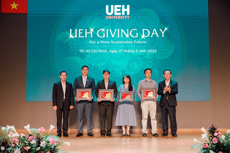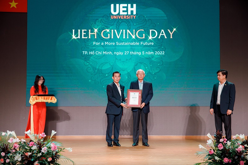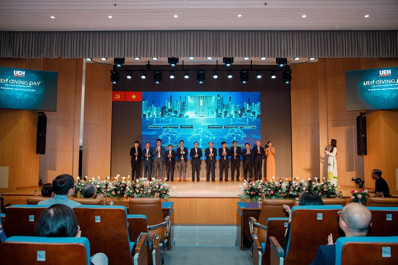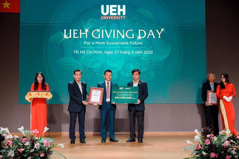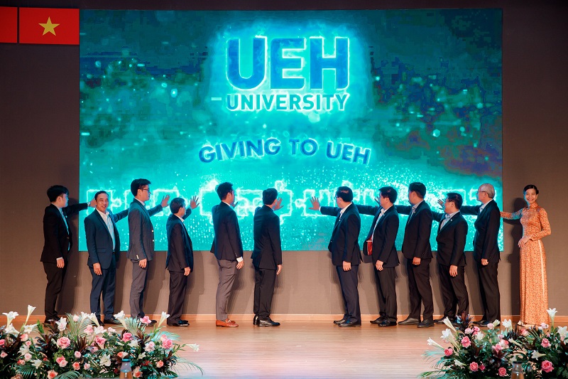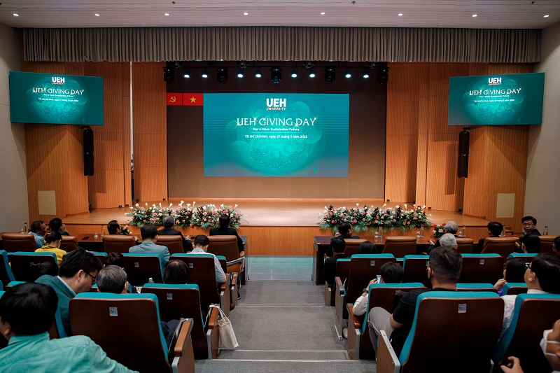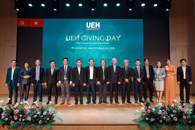 Để đánh dấu cho một hành trình lan tỏa đầy ý nghĩa mang tên “For a More Sustainable Future - Hành động vì một tương lai bền vững”, UEH đã tiến hành nghi thức kích hoạt chương trình Giving to UEH 2022 cùng lời kêu gọi đóng góp cho quỹ Giving với các hạng mục: Ươm mầm tài năng giá trị kêu gọi 10 tỷ đồng, Vươn tầm quốc tế giá trị kêu gọi 32 tỷ; Lan tỏa tri thức giá trị kêu gọi 10 tỷ và Hành động bền vững giá trị kêu gọi 3 tỷ. Với mỗi mảnh ghép trên sân khấu là mỗi sự đồng lòng và kết nối của tập thể Lãnh đạo UEH; Công đoàn trường; Phân hiệu Vĩnh Long; Khối giảng viên; Khối quản lý; Khối cựu sinh viên; Khối sinh viên; Hiệp hội và Doanh nghiệp.