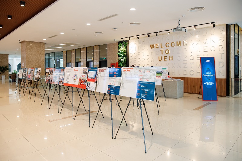 Ngoài sự kiện tại hội trường B1.302, UEH Giving Day còn mang đến cho cộng đồng Triển lãm các kết quả đã đạt được trong năm 2021 và các nội dung, hoạt động sẽ được thực hiện năm trong 2022 thuộc chuỗi các hoạt động “Cùng UEH Kết nối cộng đồng - Lan tỏa tri thức - Hành động bền vững” và chương trình “UEH Giving - Hành động vì một tương lai bền vững”.