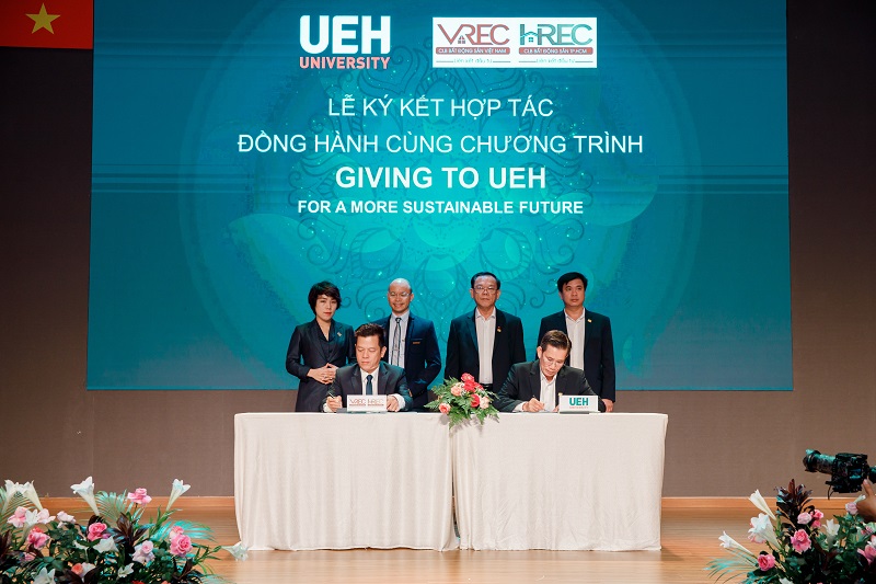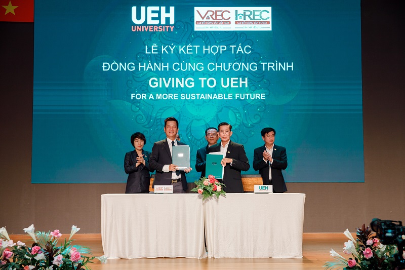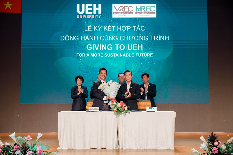 Đồng hành cùng doanh nghiệp trong chương trình lan tỏa kiến thức và kỹ năng cho cộng đồng, UEH đã tổ chức ký kết thỏa thuận đào tạo nâng cao năng lực lãnh đạo cho lãnh đạo cấp trung và cấp cao của các doanh nghiệp trực thuộc Câu lạc bộ Bất động sản Việt Nam và Câu lạc bộ Bất động sản Thành phố Hồ Chí Minh.