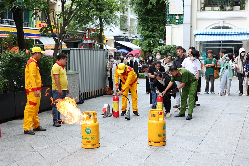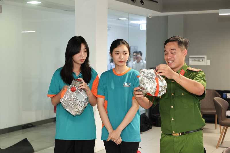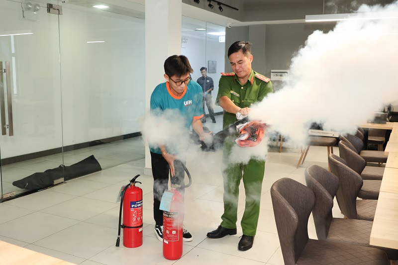 Thấu hiểu tầm quan trọng của công tác PCCC, ngày 15/9/2023, UEH đã phối hợp với Công an TP.HCM triển khai hoạt động “Tuyên truyền, hướng dẫn xử lý các tình huống cháy, nổ và tai nạn sự cố” dành cho sinh viên của Nhà trường. Trong khuôn khổ chương trình đã diễn ra những hoạt động hấp dẫn và thiết thực như: Hội thảo tuyên truyền các kiến thức PCCC tại Hội trường B1.302 dành cho 250 sinh viên UEH; Thực hành sử dụng thiết bị chữa cháy và lăng vòi chữa cháy; Diễn tập tình huống sự cố giả định, giúp sinh viên thực hành cách thoát khỏi sự cố cháy nổ tại Ký túc xá UEH.
