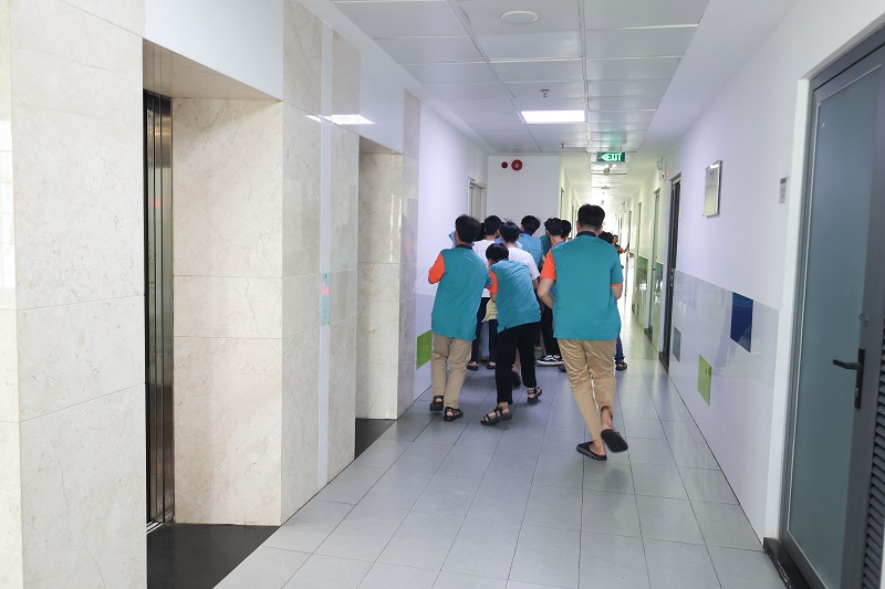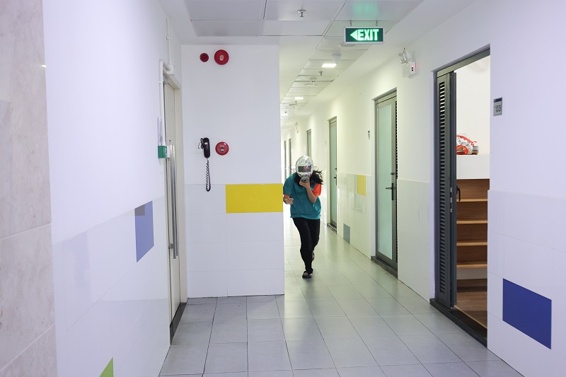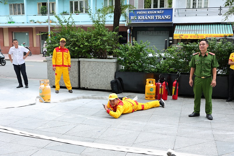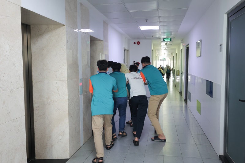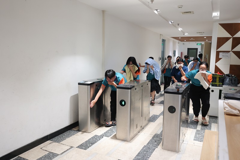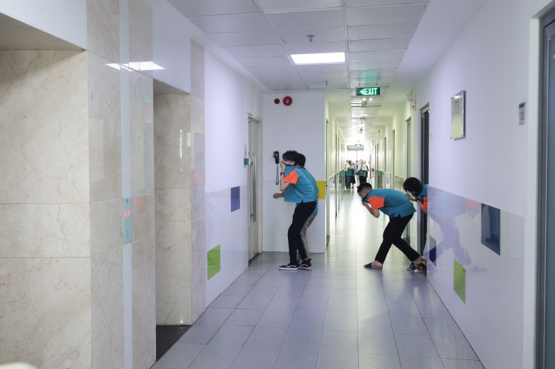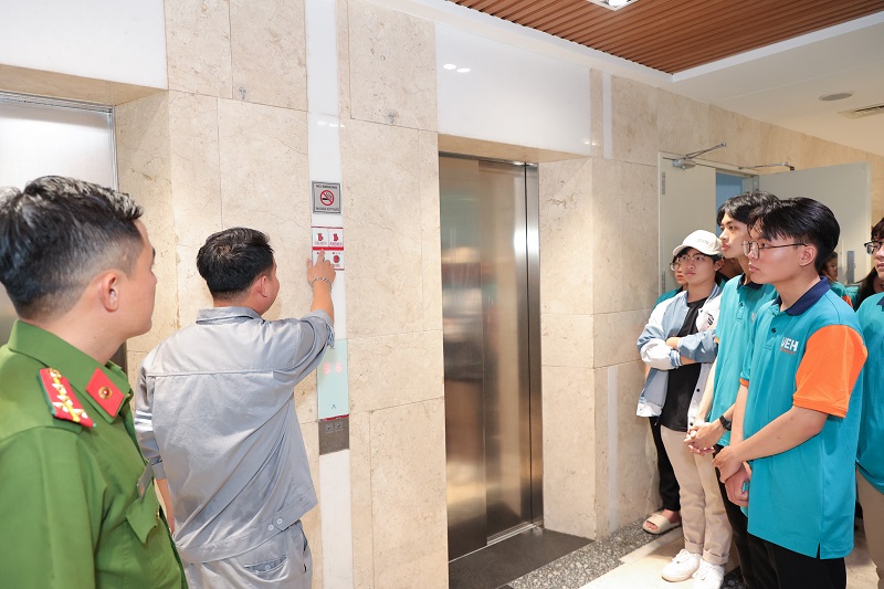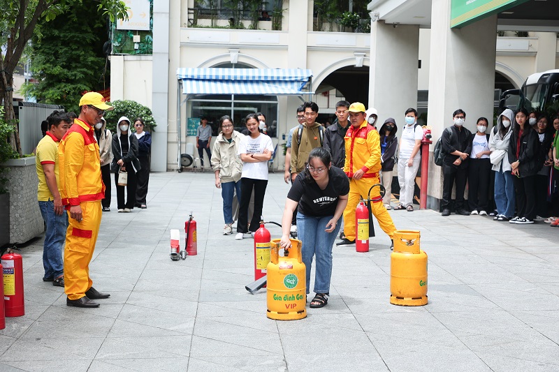 Sinh viên UEH diễn tập tình huống sự cố giả định, thực hành cách thoát khỏi sự cố cháy nổ tại Ký túc xá 135 Trần Hưng Đạo
