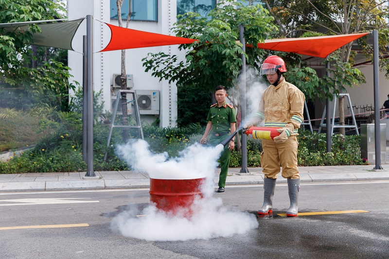 Hướng dẫn sinh viên thực hành sử dụng thiết bị chữa cháy và lăng vòi chữa cháy