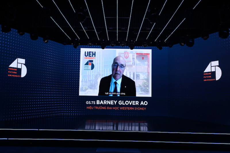 Bên cạnh đó, GS.TS. Barney Glover AO - Hiệu trưởng Đại học Western Sydney, một trong những trường đại học hàng đầu của Úc, đối tác lâu bền của UEH trong chặng đường hội nhập quốc tế cũng đã gửi những lời chúc mừng nồng nhiệt đến với nhà trường.