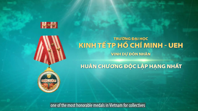Nhân dịp này, UEH vinh dự và tự hào khi được Chủ tịch nước Cộng hòa xã hội chủ nghĩa Việt Nam trao tặng Huân chương Độc lập hạng Nhất theo Quyết định số 1686/QĐ-CTN ngày 26/10/2021, một trong những Huân chương cao quý nhất của Nhà nước Việt Nam dành cho tập thể, cá nhân có thành tích đặc biệt xuất sắc, đóng góp cho sự nghiệp xây dựng và phát triển đất nước giai đoạn 2011 - 2020. Đây là sự ghi nhận của Đảng và Nhà nước về thành quả, vai trò và vị thế của UEH trong quá trình phát triển, bổ sung vào bảng vàng thành tích của Trường trong 45 năm qua. Nhà trường sẽ tổ chức nghi thức đón nhận huân chương vào ngày 20/11/2021 - nhân Ngày Nhà giáo Việt Nam.