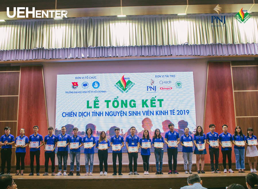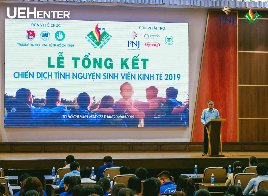 Chiều ngày 22/09/2019, tại Hội trường A.116, Trường Đại Học Kinh tế TP. Hồ Chí Minh đã tổ chức buổi Lễ tổng kết Chiến dịch tình nguyện sinh viên Kinh tế 2019 (CDTN SVKT 2019) trong không khí háo hức và tràn đầy sức trẻ của các chiến sĩ tình nguyện. Đây không chỉ là cơ hội để ghi nhận những thành quả và sự nỗ lực cống hiến của chiến sĩ mà còn là giây phút lắng đọng nhìn lại những khoảnh khắc cùng đồng đội khoác lên mình chiếc áo xanh tình nguyện và đi qua những ngày xanh của tuổi trẻ.