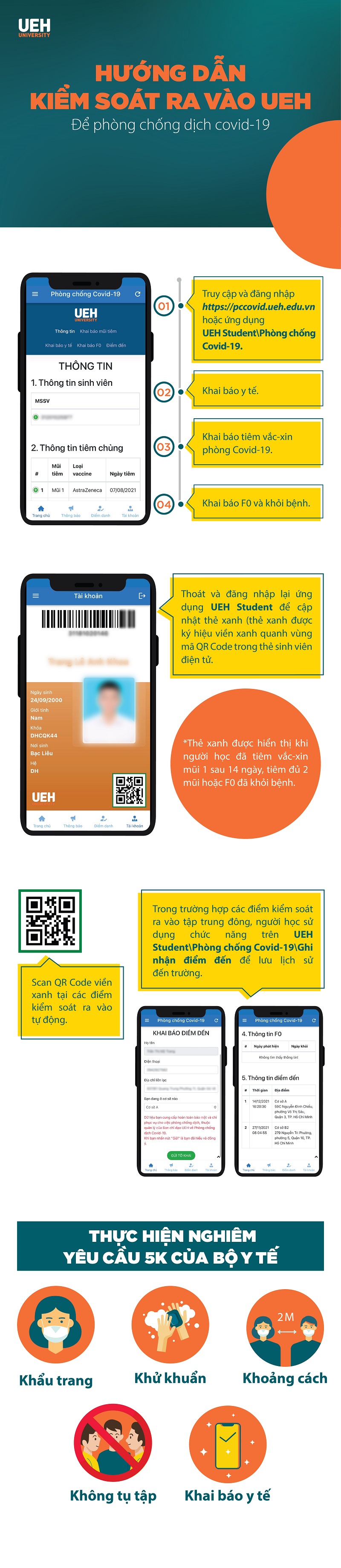 Quy trình kiểm soát ra vào đối với người học trực tiếp để phòng chống dịch Covid-19 tại UEH