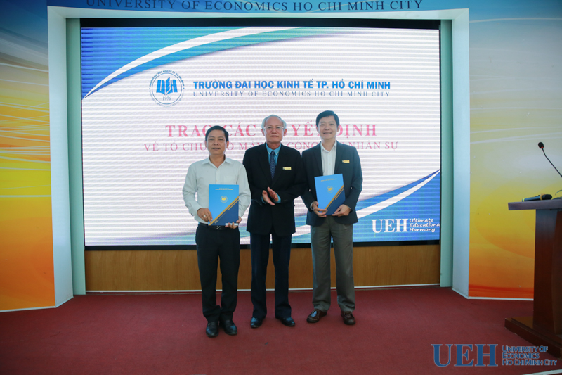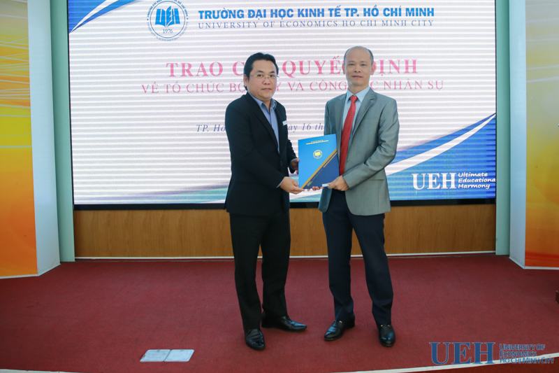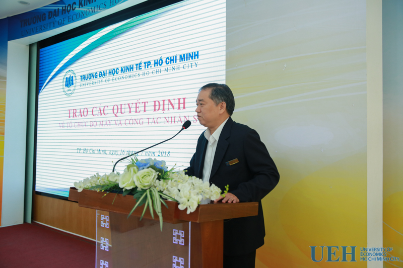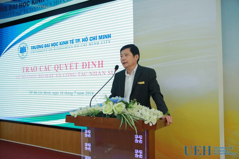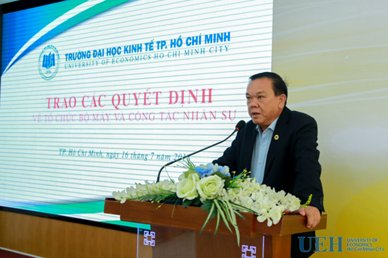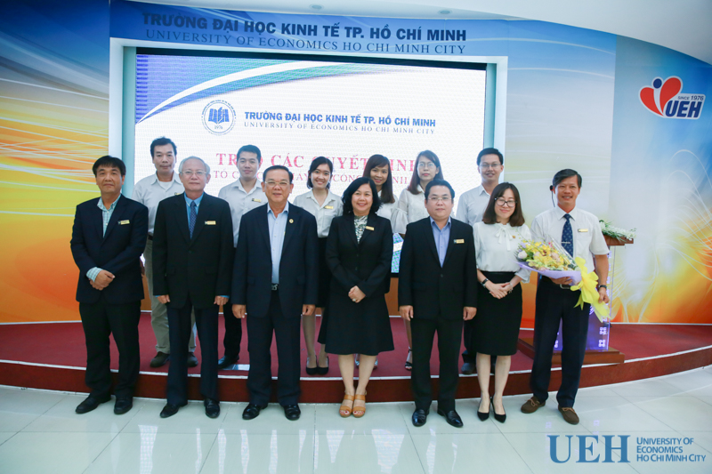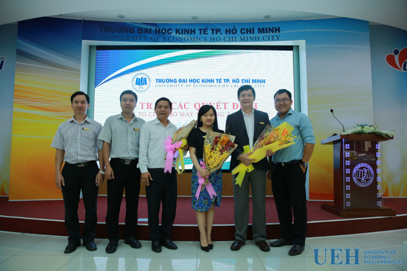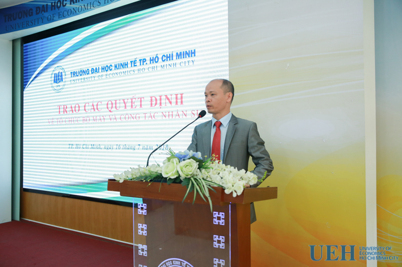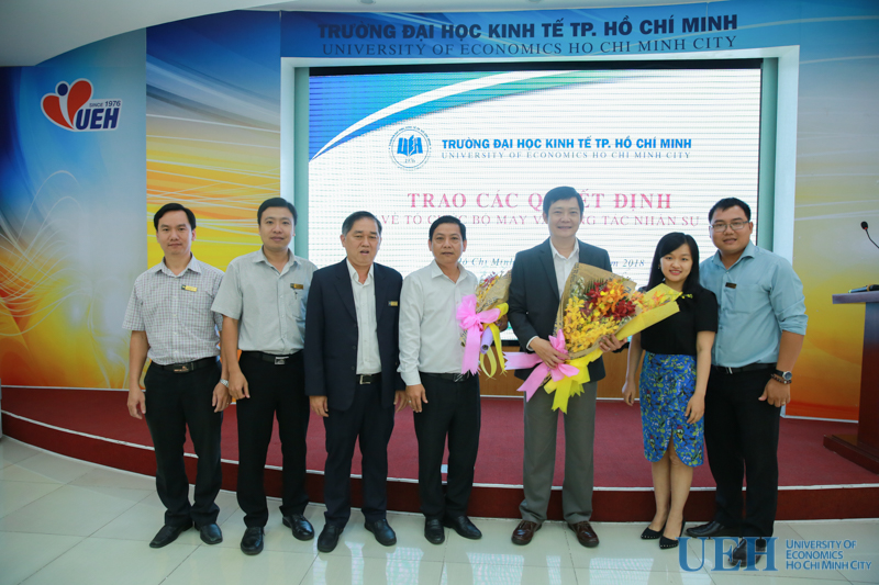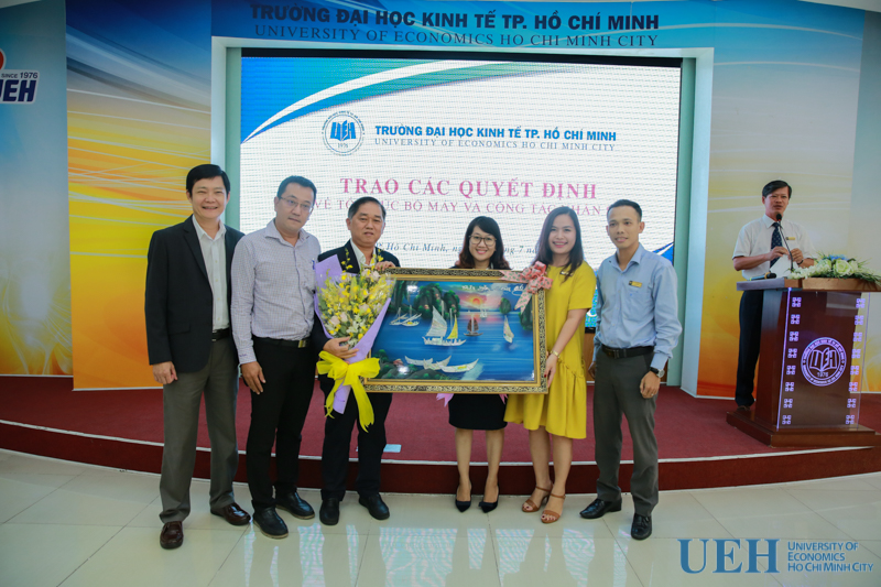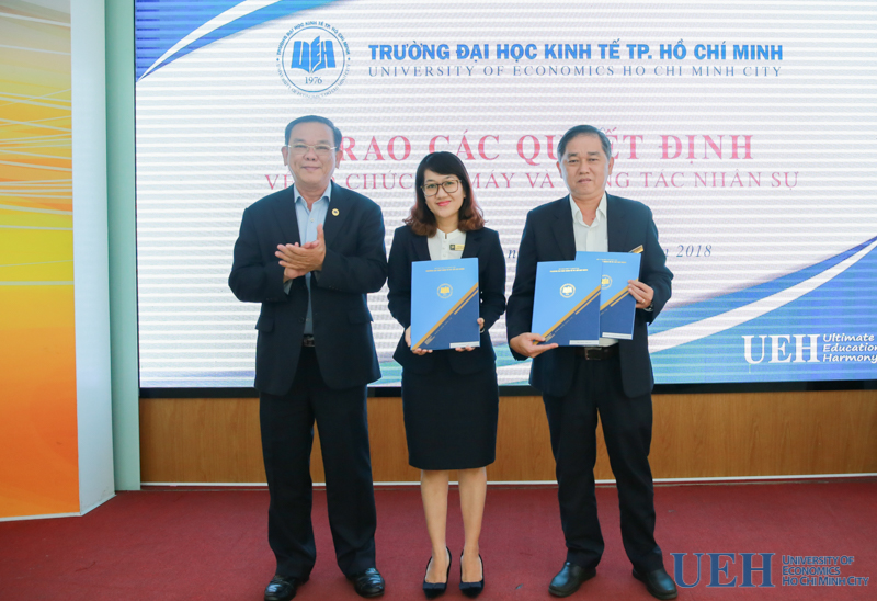 Chiều ngày 16/07/2018, tại Phòng A.103, Trường Đại học Kinh tế TP. Hồ Chí Minh (UEH) đã tổ chức sự kiện Trao các Quyết định về tổ chức bộ máy và công tác nhân sự cho các đơn vị, nhằm tinh gọn và kiện toàn hệ thống tổ chức, phù hợp với chiến lược phát triển của nhà trường.