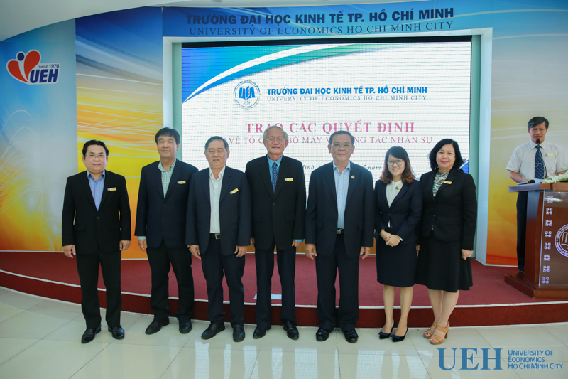 Tại buổi lễ, UEH đã công bố Quyết định thành lập Văn phòng trường Đại học Kinh tế TP. Hồ Chí Minh trên cơ sở hợp nhất Văn phòng Đảng - Đoàn thể và Bộ phận Hành chính - Tổng hợp thuộc Phòng Tổ chức - Hành chính; đổi tên Phòng Tổ chức - Hành chính thành Phòng Nhân sự; giải thể Ban Quản lý các dự án đầu tư xây dựng và bổ nhiệm Trưởng khoa Luật Kinh tế. Theo đó, nhân sự các đơn vị có những thay đổi sau: