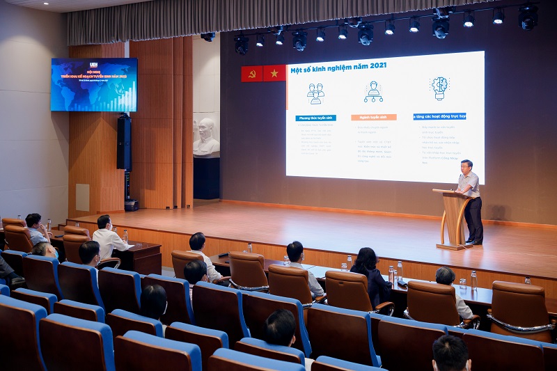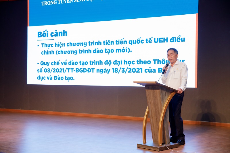 Báo cáo kết quả tuyển sinh năm 2021 và đề xuất kế hoạch năm 2022, PGS.TS. Nguyễn Khắc Quốc Bảo - Trưởng phòng Phòng Đào tạo UEH cho biết: Mùa tuyển sinh năm 2021 là năm đầu tiên UEH áp dụng 7 phương thức tuyển sinh khác nhau, lần đầu tiên UEH có 2 phương thức tuyển sinh mới cho thí sinh tốt nghiệp THPT nước ngoài và thí sinh bị hạn chế, giãn cách do Covid-19. Bên cạnh đó, năm 2021, UEH đưa nhiều chuyên ngành ra thành ngành, tuyển sinh một số chương trình đào tạo mới như: Kiến trúc và Thiết kế đô thị thông minh, Quản trị công nghệ và Đổi mới sáng tạo,… Đồng thời, gia tăng các hoạt động trực tuyến như: tư vấn tuyển sinh, tiếp nhận hồ sơ, xác nhận nhập học, tư vấn nhập học trên Platform cổng nhập học… Chất lượng sinh viên đầu vào - K47 thể hiện được học lực giỏi và tính toàn diện.