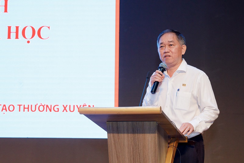 TS. Nguyễn Thiện Duy - Trưởng phòng Phòng Đào tạo thường xuyên báo cáo tại Hội nghị