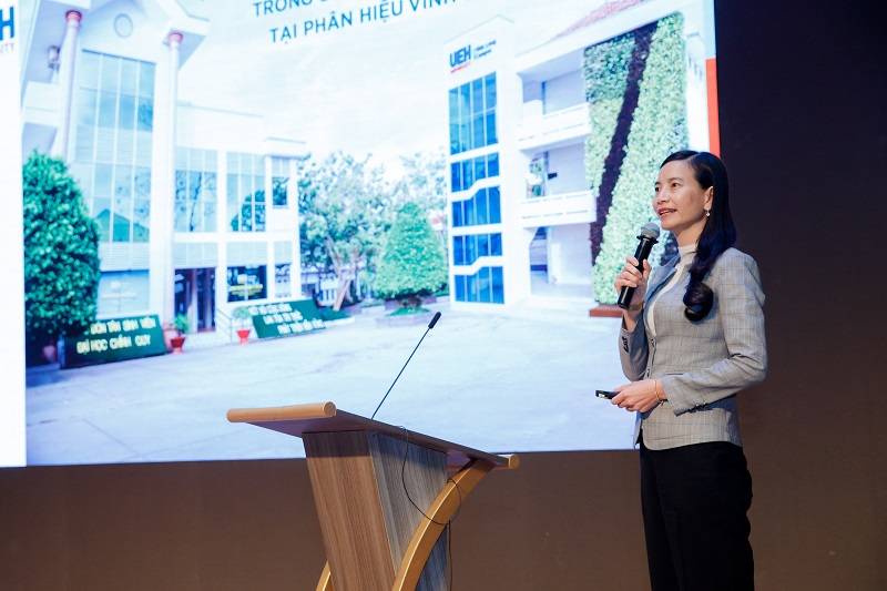 UEH Phân hiệu Vĩnh Long với 2 năm thành lập đã đạt được những kết quả vô cùng khả quan trong công tác tuyển sinh. ThS. Nguyễn Thị Thý Liễu - Phó Giám đốc thường trực UEH Phân hiệu Vĩnh Long cũng đã có bài tham luận về “Vai trò của đội ngũ viên chức, người lao động và sự kết nối các nguồn lực bên ngoài trong công tác tuyển sinh tại Phân hiệu Vĩnh Long”. Theo đó, các nguồn lực quan trọng gồm: Vai trò kết nối của Ban giám đốc và lãnh đạo các đơn vị trực thuộc với đội ngũ giảng viên, viên chức, người lao động; Kết nối các đội ngũ làm công tác tuyển sinh; Tăng cường thiết lập mối quan hệ giữa các cơ quan, đơn vị, các doanh nghiệp; Kết nối với các cá nhân, đơn vị tại cơ sở chính; Đảm bảo và nâng cao chất lượng giảng dạy và hoạt động chăm sóc người học.