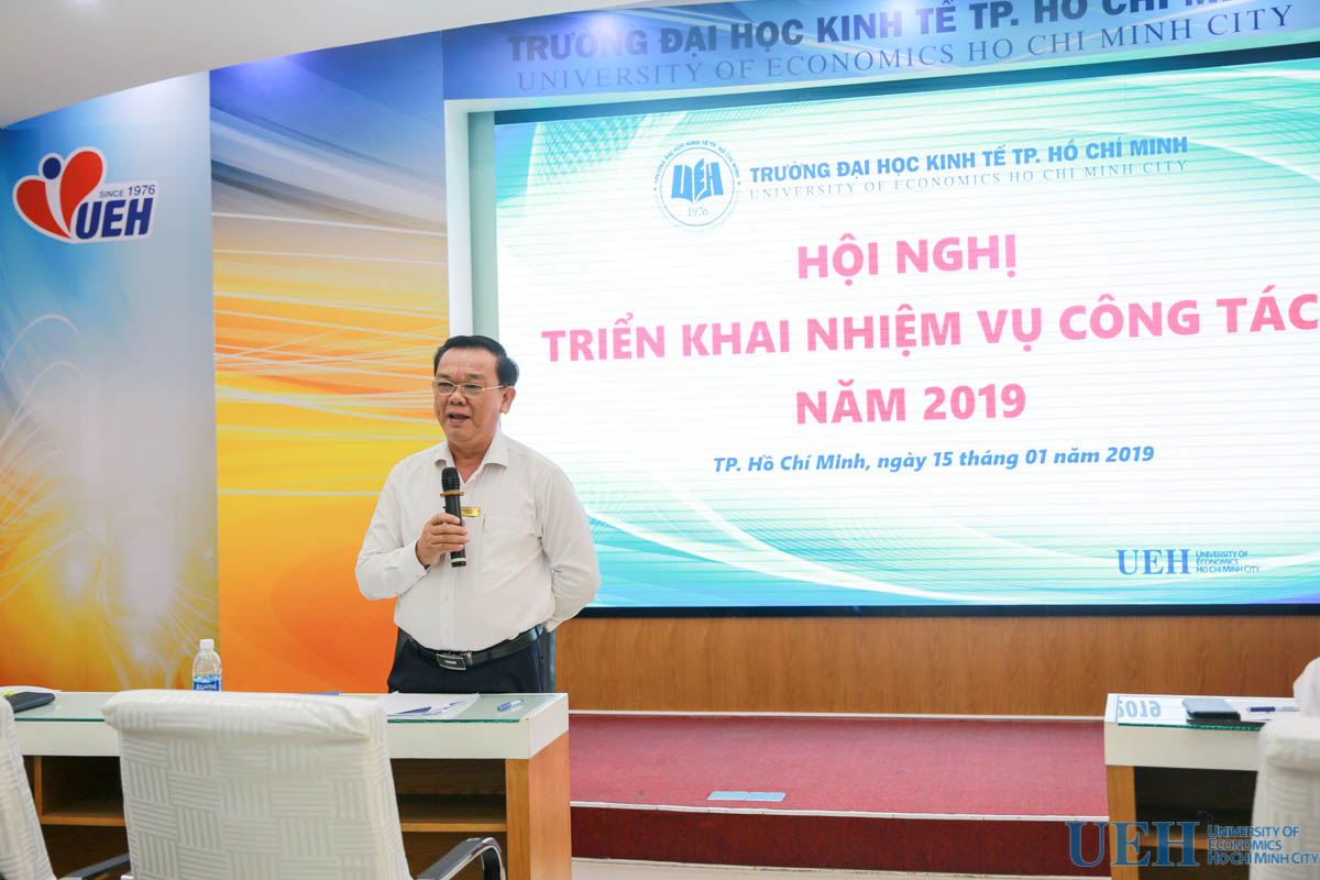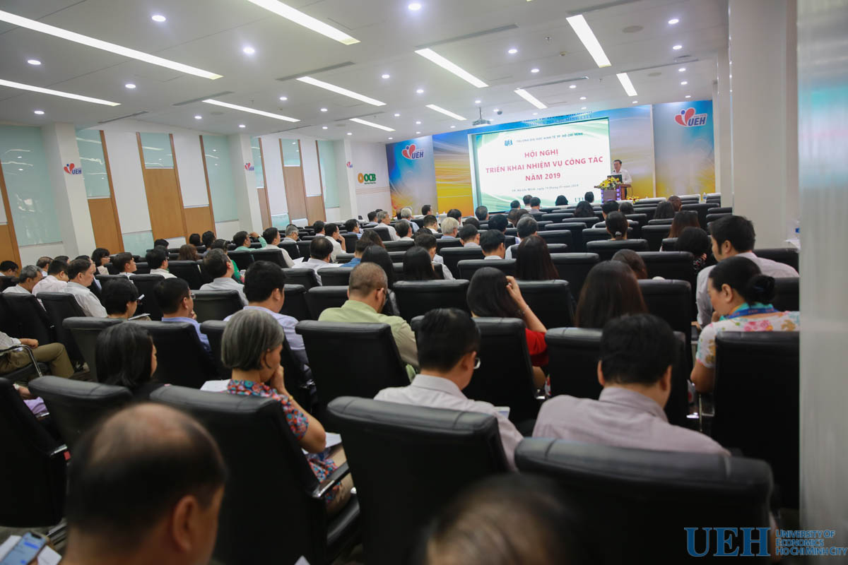 Tiếp nối Hội nghị Đại biểu công chức viên chức năm 2019, nhằm kịp thời triển khai, cụ thể hoá các định hướng lớn và các hoạt động trọng tâm trong năm 2019, Trường Đại học Kinh tế TP. Hồ Chí Minh (UEH) đã tổ chức Hội nghị triển khai nhiệm vụ năm 2019 vào sáng ngày 15/01/2018, tại Cơ sở A.