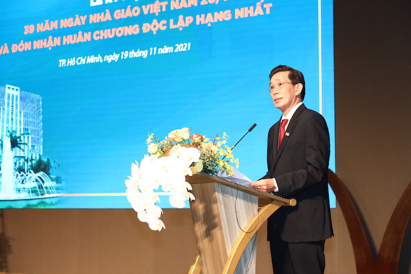 Phát biểu tại buổi lễ, GS.TS. Sử Đình Thành - Hiệu trưởng UEH chia sẻ: “Họp mặt Ngày Nhà giáo Việt Nam năm nay gắn liền với niềm vui, niềm tự hào của Đại gia đình UEH với cột mốc kỷ niệm 45 năm thành lập trường; nhân dịp này, UEH cũng vinh dự tổ chức nghi thức đón nhận Huân chương Độc lập hạng Nhất; đây cũng là sự ghi nhận của Đảng và Nhà nước về thành quả, vai trò và vị thế mà UEH đã đạt được trong 45 năm không ngừng phấn đấu đi lên, vươn tầm khu vực và hội nhập quốc tế. Để đạt được những thành tựu to lớn đó là nhờ vào sự nỗ lực, công lao đóng góp miệt mài của nhiều thế hệ lãnh đạo của Nhà trường và Thầy Cô, viên chức UEH. Thay mặt Đảng ủy, Hội đồng trường, Ban Giám hiệu, tôi xin trân trọng ghi nhận và cảm ơn tất cả lãnh đạo, Thầy Cô, viên chức đã nghỉ hưu và đang làm việc về những đóng góp quý báu đó. Đấy cũng là cơ sở động lực to lớn để Trường ta mạnh dạn và tâm huyết tiếp tục đổi mới và tiến về phía trước.”