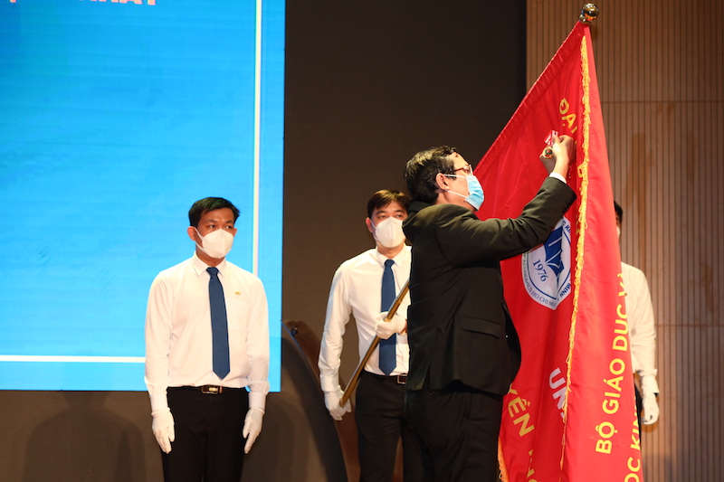 TS. Trần Văn Minh - Phó Tổng Thanh tra Chính phủ trao Cờ thi đua Chính phủ cho UEH