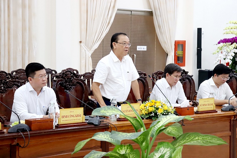 Ủy viên Ban Chấp hành Trung ương Đảng, Bí thư Tỉnh ủy An Giang Lê Hồng Quang phát biểu tại buổi làm việc